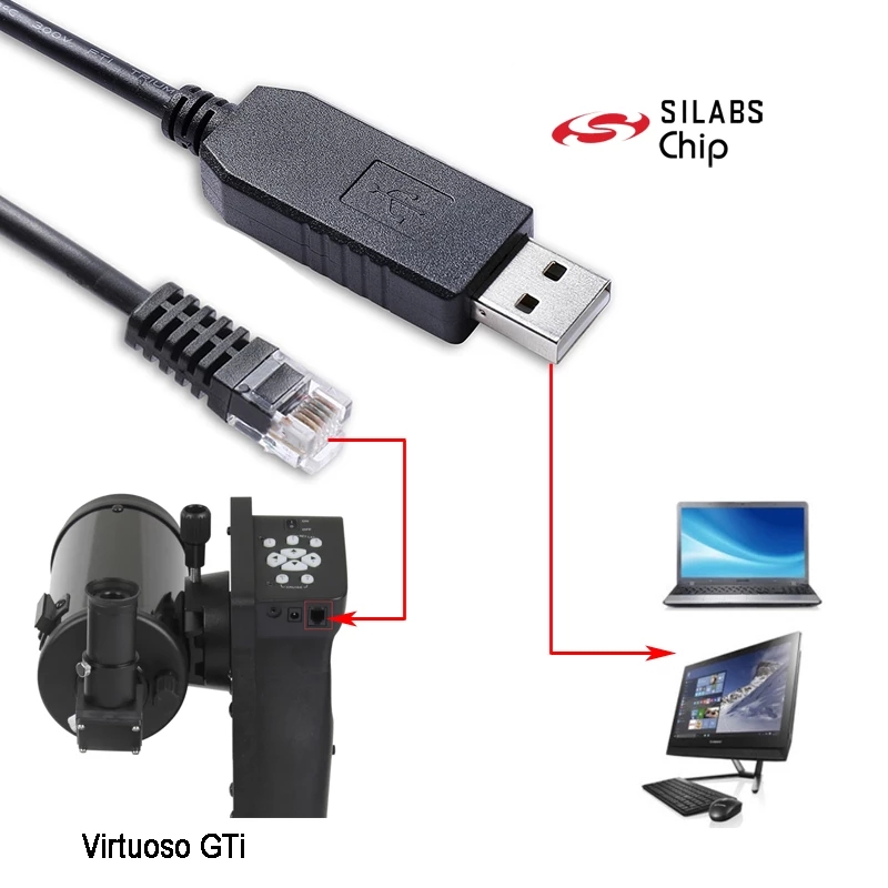 Skywatcher Virtuoso GTI Mount PC Link Communication EQMOD Cable FT232RQ USB Uart TTL to RJ12 6P6C PC