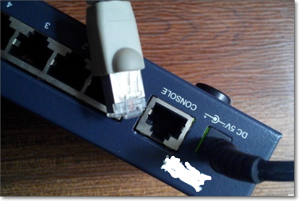 2、把配置线的另一端插入交换机的Console口,并连接好交换机与电脑。