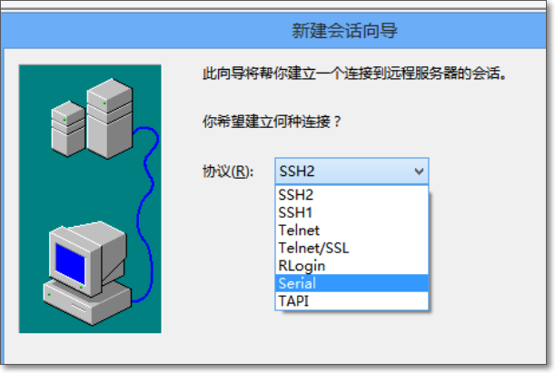 3、打开secureCRT,新建连接,选择“Serial”。